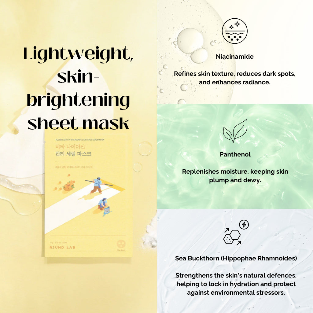 ラウンドラボ ヴィタ ナイアシンアミド ダークスポットセラムマスク - 1箱 - 10枚入り x 20ml